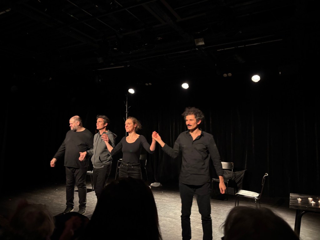 « Scotchée ». C’est le terme qui m’est venu à la sortie, quand vient l’heure de l’échange d’impressions. Littéralement « scotchée ». Oui, je sais, le terme est bien désuet. Cependant il existe en tant que participe passé du verbe « scotcher : (Transitif) (Sens figuré) (Familier) Épater, étonner, interloquer, surprendre, stupéfier. » Vous me pardonnerez le « familier ». Mais comment ont-iels réussi à nous « embarquer » (je continue…) toutes et tous dans leur histoire… je dirais même leurs histoires, avec aussi peu de moyens?