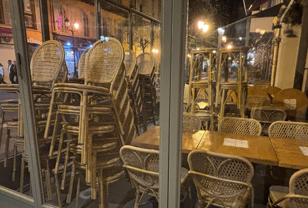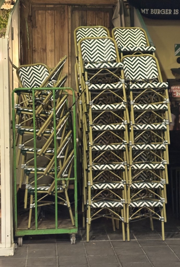 Lui-même avait acquiescé quand, après avoir vu la carte, je lui avais demandé s’il était » de là-bas ». Autre détail le rendant bien sympathique, ce tout jeune patron de restaurant : il essayait d’écrire sur une ardoise affichée au mur (que vous voyez sur la photo ci-dessus, derrière ma chaise – celle qui porte un blouson blanc), et n’y parvenait pas. Je lui demande ce qu’il veut inscrire : il voulait faire une réduction aux personnes qui avaient, le matin, couru le semi-marathon de Paris. Je lui demandai s’il l’avait fait lui-même. « Oui », me répondit-il, en me montrant la grosse médaille grise (en plastique!) qu’il cachait sous ses vêtements.