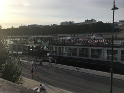 Une vaste terrasse alliant métal et bois offre une magnifique vue sur le couchant à l’ouest, le pont et le Grand Palais à l’est et au nord-est.