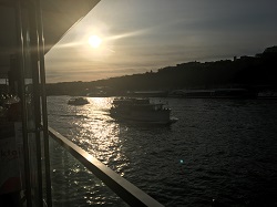 Me voici donc sur place en ce dimanche soir de juillet… et, première surprise, une contestation exprimée juste en face de l’embarcation…