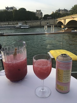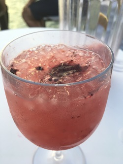 Une boisson bien fraîche, rien de tel en ce crépuscule estival… Un mélange de Prosecco et de fruits divers, servi sur des glaçons en nombre considérable…