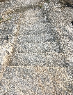 Non, les rochers ne se sont pas déguisés cette fois… c’est bien la main de l’Homme qui les a modifiés, en taillant l’escalier final.