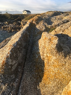 J’aime la profonde minéralité des côtes bretonnes, dont les enrochements créent des oeuvres surprenantes, quand ils ne jouent pas à se déguiser, comme celui-ci, en rampe de lancement.