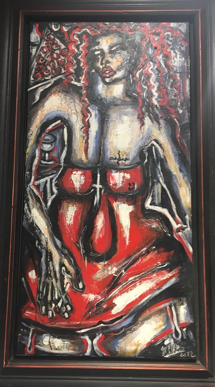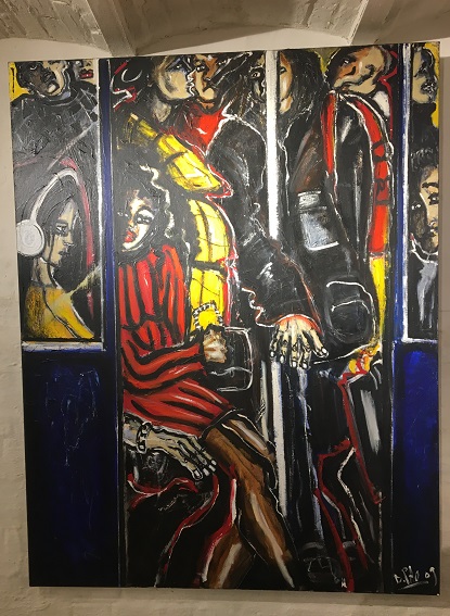 Hélas la toile que je préférais a été vendue sous mes yeux et emportée par un jeune couple de Néerlandais… je n’ai donc pas pu la photographier à temps!