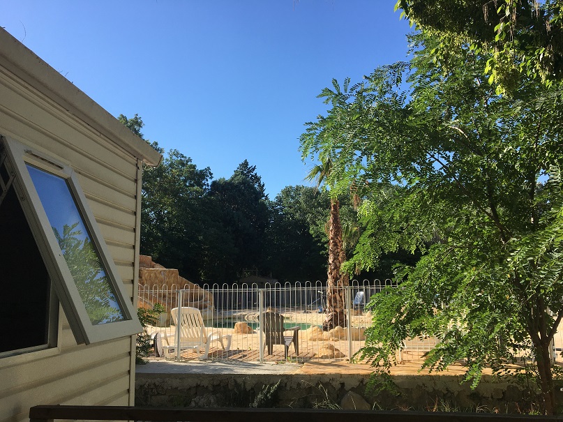 Le camping a tout pour plaire aux petit-e-s comme aux grand-e-s, avec jeux, terrain de pétanque, mini-golf, restaurant et, bien sûr, piscine. Piscine au bord de laquelle était situé le mobil-home qui nous a abrités, choisi pour sa climatisation, car la différence de température entre Paris et Tarascon n’était pas mince!