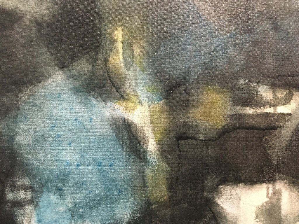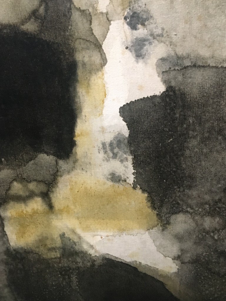 Puis avec les jeux de superposition et la transparence extrême de certains tableaux, en particulier dans une série datant des années 60, dont celui-ci dont j’ai photographié un extrait.