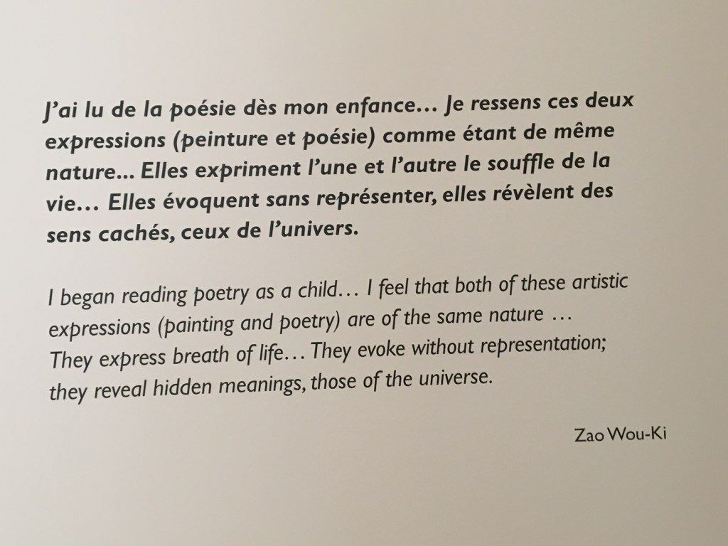 Dans le précédent article, nous étions à Deauville pour l’exposition consacrée à Zao Wou-Ki, et je vous avais promis de finir sur ses rencontres avec les poètes. En effet, une partie de l’exposition est consacrée au dialogue entre les oeuvres des uns et des autres.