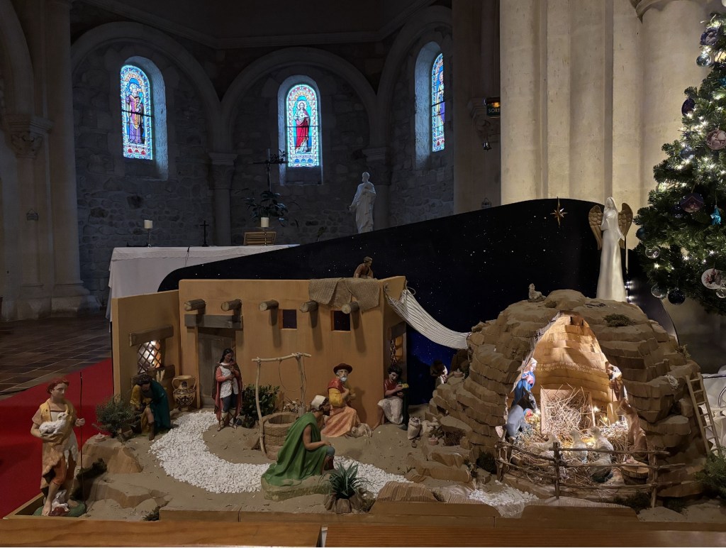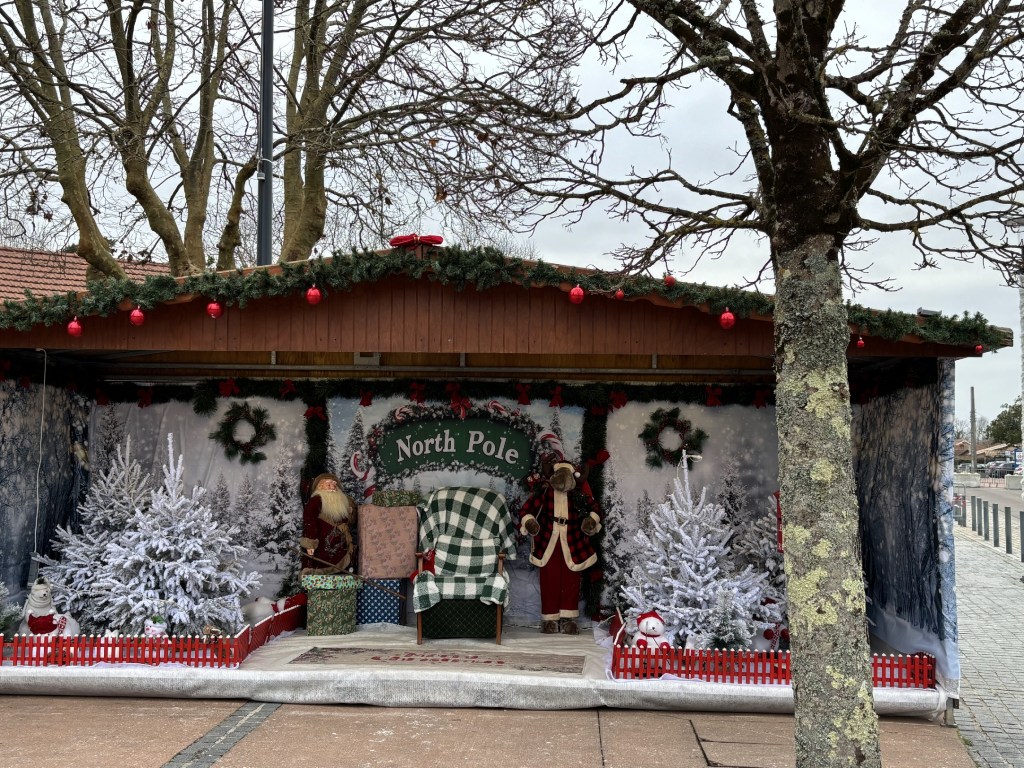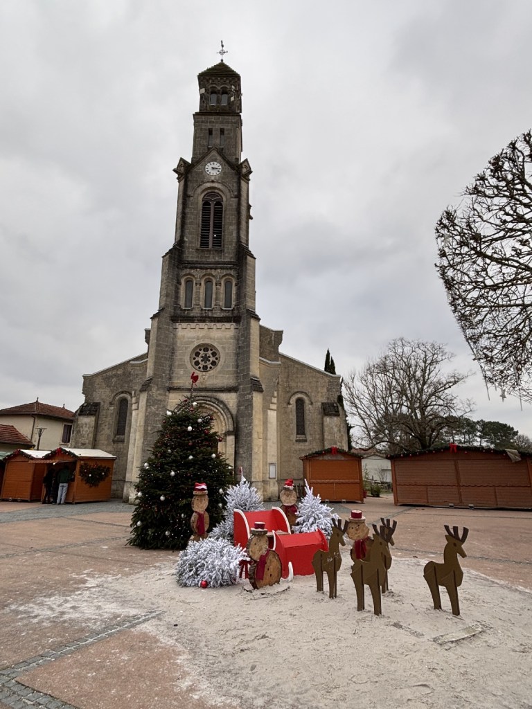A la sortie resurgit le monde païen, avec un mini-village de Noël.