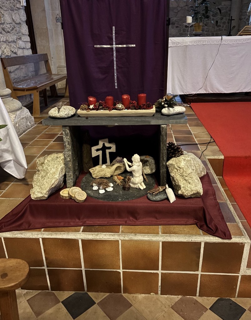 Un village dont le centre est interdit aux véhicules, en cette période de fêtes. Voilà de quoi m’intriguer. Arrêt donc au centre de Lège, sur le parking proche de l’église Saint Pierre. Je précise, car il n’y a pas moins de trois églises à Lège! Et celle-ci a failli s’appeler Saint Blaise car, en 1770, un effroyable ouragan détruisit les récoltes et noya le bétail. Les habitants adressèrent alors une pétition à l’archevêque.