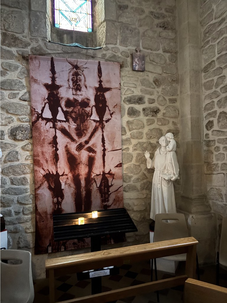 L’église actuelle ne date que du début du 20ème, car la précédente, trop petite, a été détruite en 1925 pour être remplacée, trois ans plus tard, par l’actuelle. L’intérieur en est surprenant. Dès la porte d’entrée, une forme de militantisme.