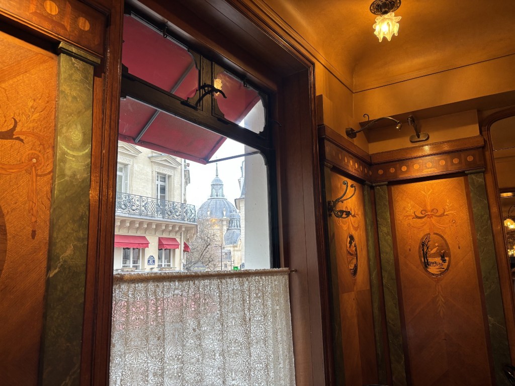 Enfin, la vue du 1er étage où nous avons déjeuné ouvre en perspective sur la coupole de l’église Saint Pierre Saint Paul.