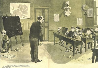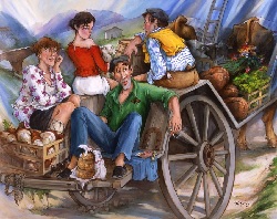 Mylène a fait son choix de fruits et de légumes ; Elle ajoute un canard vivant aux belles plumes ! Alidé bat des mains, quand, pour la contenter, La mère donne enfin son panier à porter. La charge fait plier son bras, mais déjà fière, L’enfant part sans rien dire et se cambre en arrière, Pendant que le canard, discordant prisonnier, Crie et passe un bec jaune aux treilles du panier.