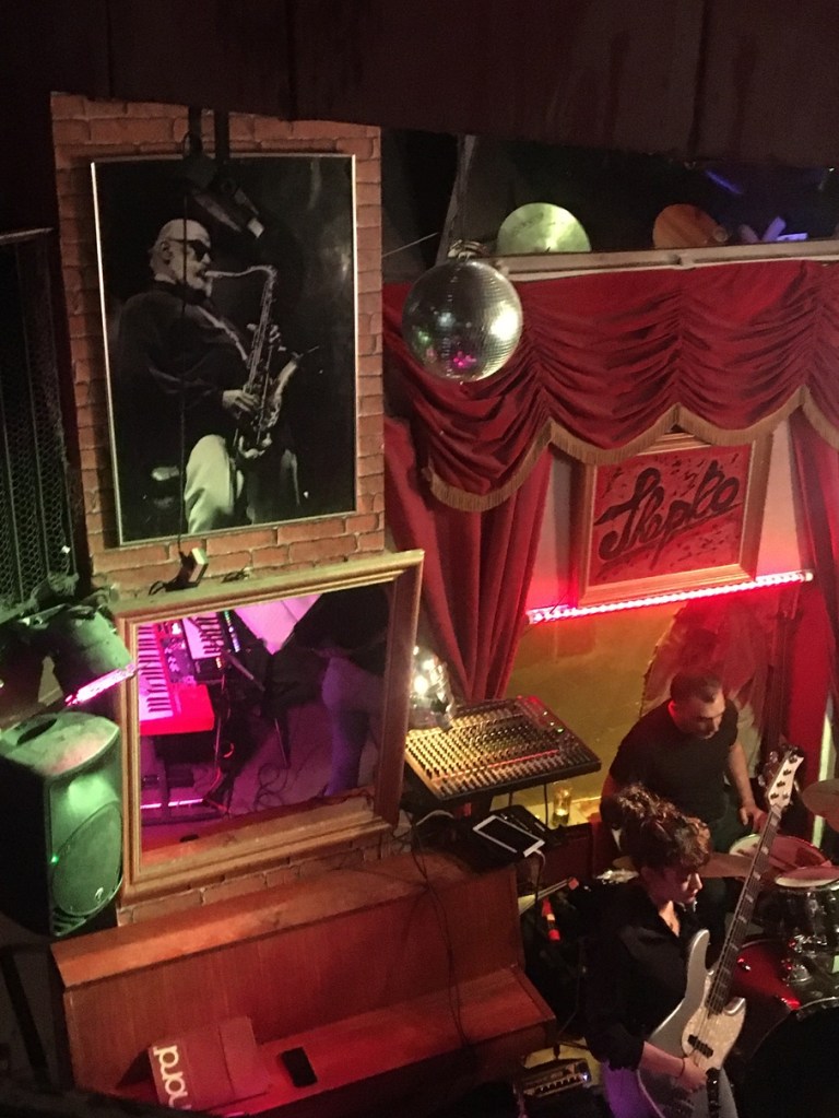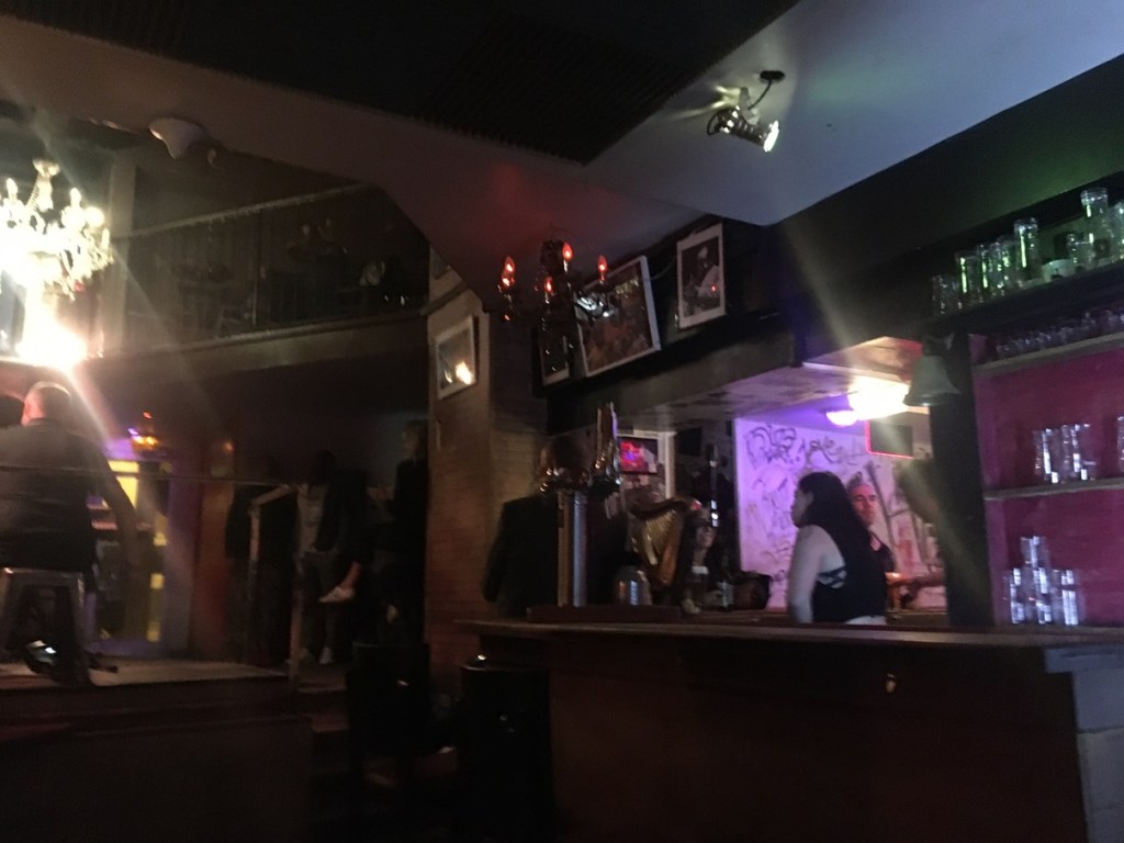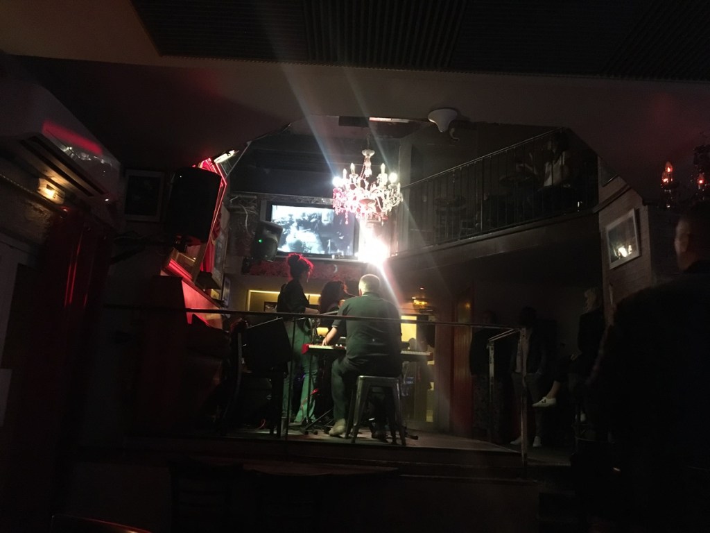 Après la barigoule, envie d’aller écouter de la musique. Rien que de normal, non? Me voici donc accueillie par un grand malabar (non, pas la friandise, ni un homme addict à l’alcool !) et entrant dans un espace hors du temps, et si loin de la rue dont pourtant seule une porte le sépare. Il fait sombre… ne vous attendez donc pas à une belle qualité de photos, mon Iphone n’aimant pas l’obscurité…