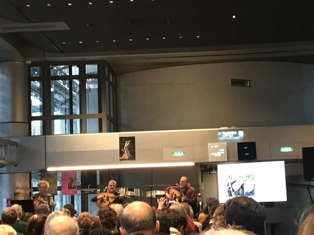 Beaucoup de monde dans la bibliothèque où va commencer le concert. Mais il reste des places assises. Trois musiciens, et je découvre près de moi, entre deux rangées d’étagères, Jack Lang.