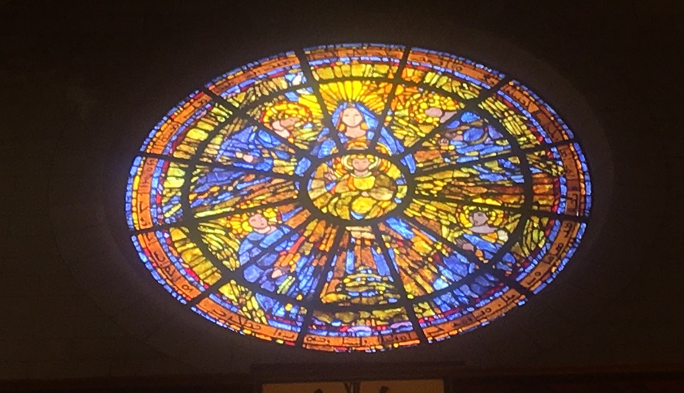 Ambiance totalement différente dans la salle suivante, où nous sommes invité-e-s à nous recueillir pour quelques minutes du Laudate dominum.