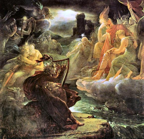 « Il faut dire qu’Échos d’Ossian avait pour plaire deux qualités majeures prisées au XIXe siècle. Tout d’abord, le XIXe est le siècle de foisonnement des couleurs et écoles nationales, notamment nordiques : la Norvège d’Edvard Grieg, la Finlande de Jean Sibelius, le Danemark de Carl August Nielsen. Ensuite, Ossian est une figure mythique de la poésie : les textes de ce « barde écossais du IIIe siècle » ont bouleversé l’Europe au XVIIIe et si leur véracité est discutable (ils ont été passablement adaptés par James Macpherson en 1760), leur influence est capitale, provoquant un mouvement valorisant les identités dans le courant romantique et une « celtomanie » (inspirant beaucoup Wagner pour sa Tétralogie). » (source)