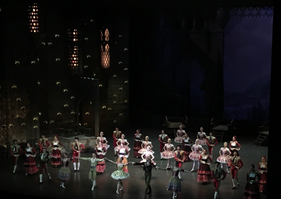 Le duo entre amoureux, contraints de se cacher pour échapper à l’ire paternelle? Le côté slave de la deuxième partie, tout en nuances de gris, de bruns et de bleus, seulement troublées par le rose et le vert pâles des tutus du corps de ballet?