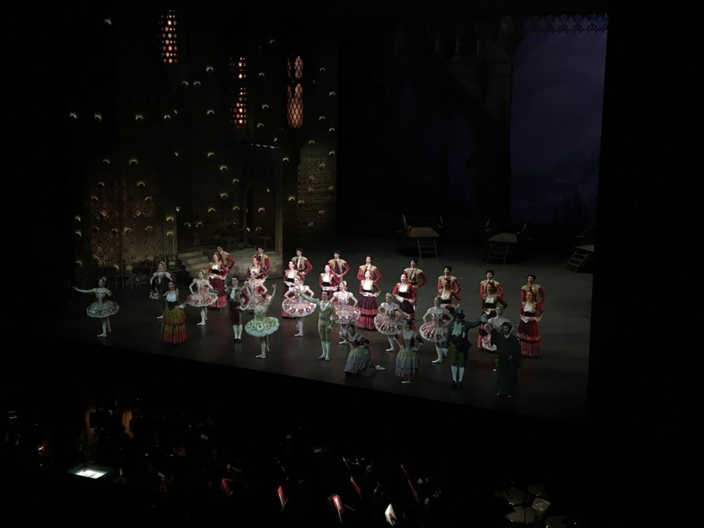 Mais n’exagérons point : certaines figures furent remarquables, et la technique est bien là. J’ai cependant – vous l’aurez compris – regretté un manque d’ « envols »… Néanmoins, un superbe ballet… Les photos prises à la fin (pas le droit – et pas l’envie – d’en prendre pendant le spectacle) sont floues, mais je vous les transmets quand même, pour que vous ayez un aperçu des personnages.