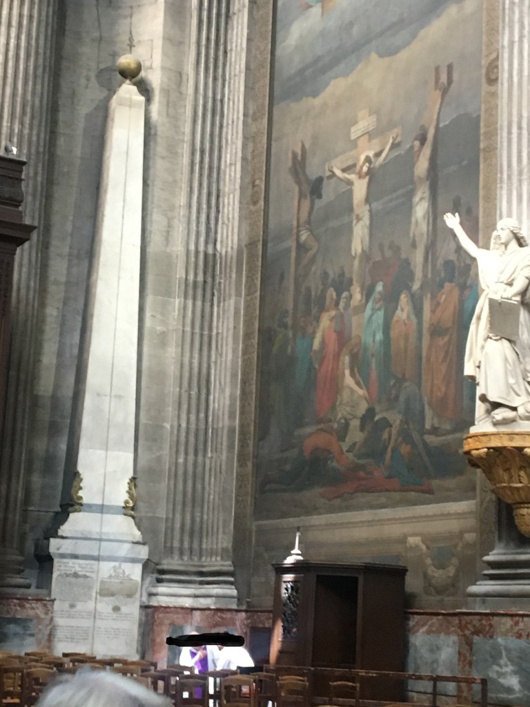Vous devinez que j’ai beaucoup moins apprécié… et vous avez raison… Et de ce fait, mon regard s’est davantage promené aux alentours. Au pied du gnomon, un prêtre confessait… hors du confessionnal…