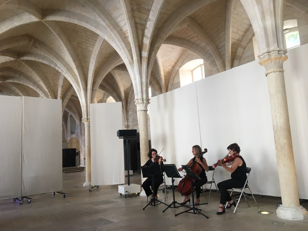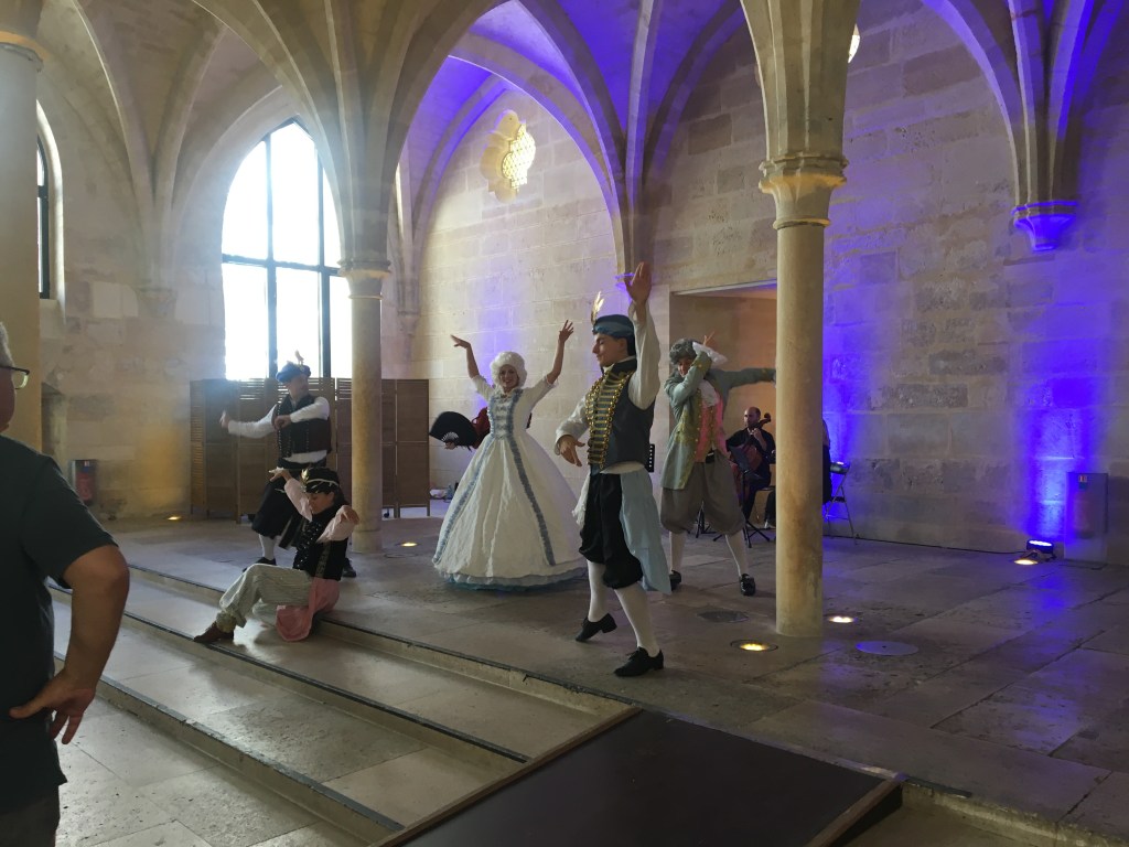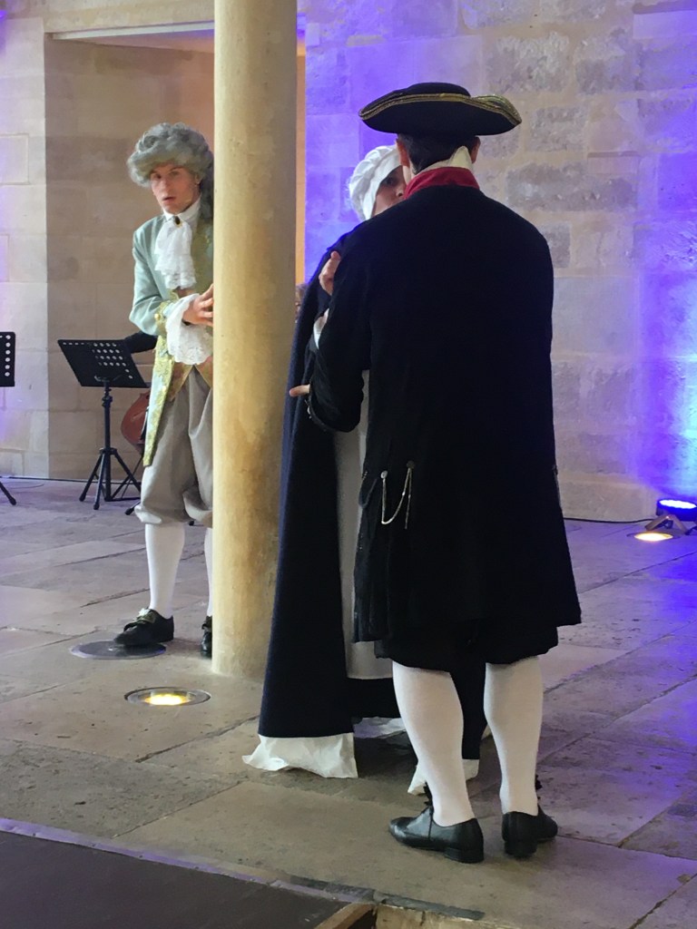 Un petit groupe d’heureux/ses élu-e-s participa donc avec moi à ce qui tient à la fois de la visite des lieux (que je n’avais jamais pu faire car les expositions et concerts déjà vus ici se tenaient au rez-de-chaussée), visite théâtralisée, de mini-concerts avec projections, de ballets, le tout impliquant au maximum le public, jusqu’à lui faire danser le menuet… Inutile de vous dire combien le rythme est soutenu pour que tout puisse se faire en 1h20.