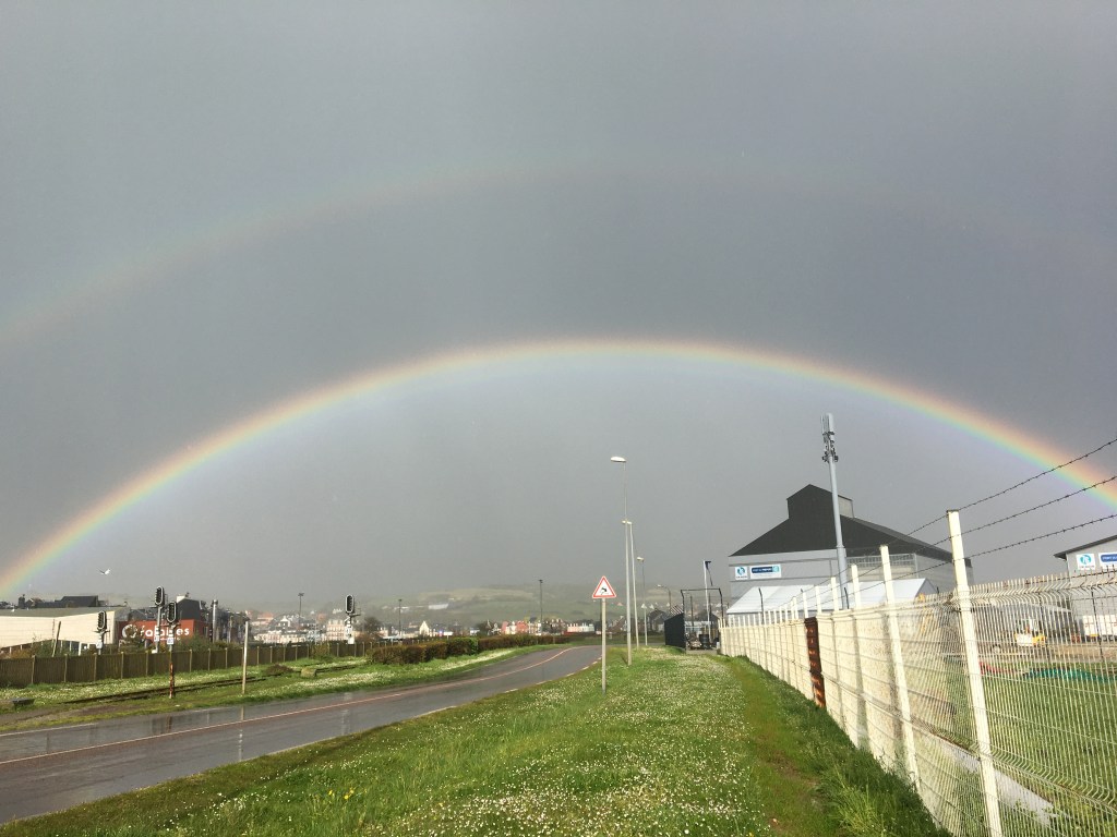 Jamais je n’aurais pensé photographier Mers-les-Bains et Le Tréport sous cet angle peu « touristique ». Mais l’occasion était trop belle, en ce lundi de Pâques, avec ce double arc-en-ciel qui me faisait de l’oeil!