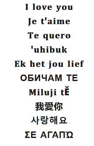 A vous de retrouver dans la liste qui suit l’expression signifiant « je t’aime » en grec. Un petit piège : elle est en majuscules, pour que ce ne soit pas trop facile!