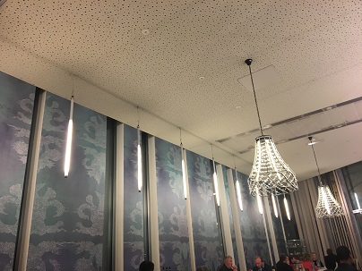 Trois restaurants, disais-je : Astérie, type gastronomique; Côté Jardin, cuisine de saison; enfin, Orée, brasserie. C’est dans le premier que je vous emmène… Une vaste salle aux immenses baies vitrées.