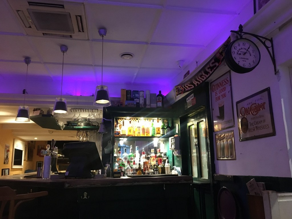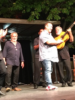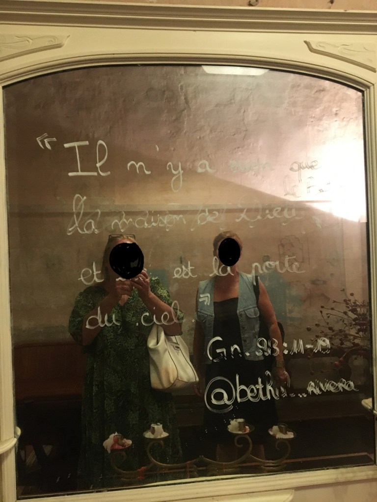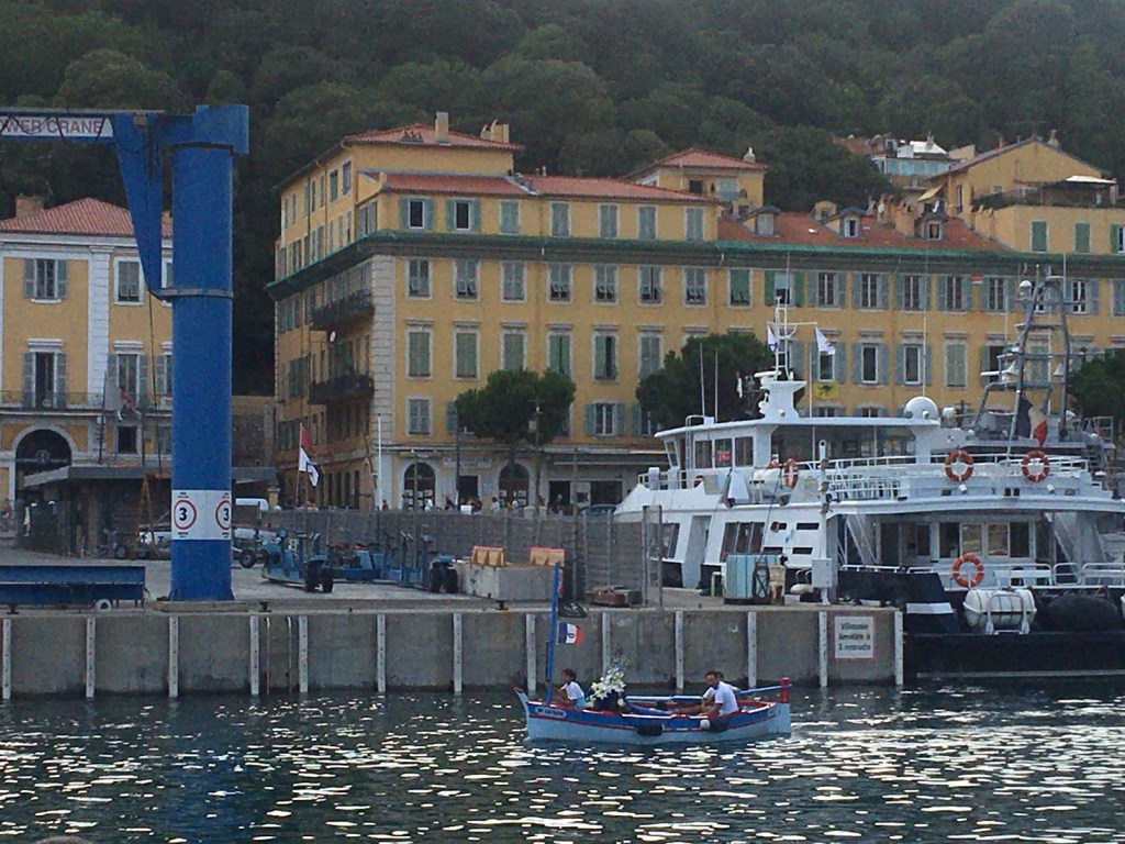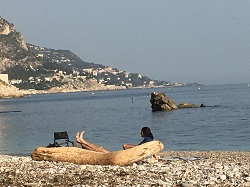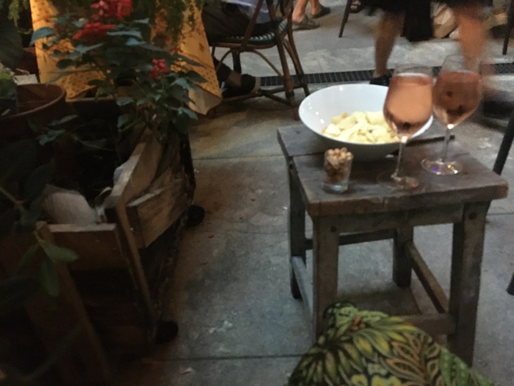 Je n’ai pas pu profiter d’un dîner sur les galets, hier soir, car le temps ne le permettait pas (vent fort et risque de pluie). Mais la patronne s’était arrangée pour que nous ayons une jolie table face à la mer. Et le patron, son ami hongrois et deux jeunes serveuses nous ont servis avec le sourire, agrémentant ainsi, s’il en était besoin, un repas frais et authentique. Pour une trentaine d’euros par personne, avec dessert, café (vrai ristretto!) et Viognier de Toscane, ça vaut le détour. Belle salle, chaleureuse, qui m’a presque fait oublier que je ne pouvais pas dîner en plein air… Heureusement, j’avais pris la précaution de prendre l’apéritif sur le terrasse du bar voisin (là aussi, serveur accueillant et souriant, polyglotte), qui sert des Moscow Mule et du Pastis!
