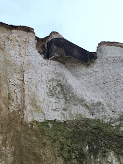 Traces de vie, donc, dans le lointain, qui contrastent avec l’étendue déserte devant moi et aux « restes rongés » de la superbe falaise.