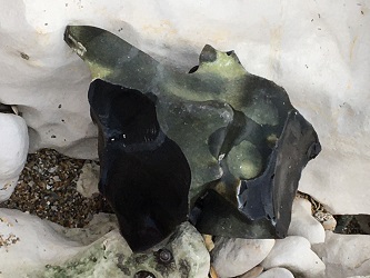 Les galets éclatés sont autant de joyaux que l’on découvre parfois au détour d’un bloc d’albâtre, dont la blancheur fait ressortir encore davantage la couleur vive exaltée par l’eau et la lumière conjointes.