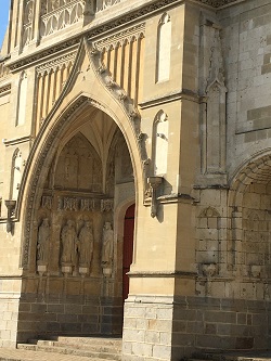 Consacrée par Thomas Becket en 1170, elle a aussi subi beaucoup de coups durs, dont un incendie au 16ème siècle et le destruction de sa flèche lors de la Révolution. Mais elle garde encore fière allure…