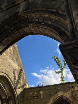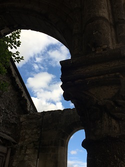 Je me suis intéressée au jeu du ciel et des plantes environnantes avec les ouvertures résultant de la destruction importante de cette église.