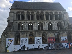 Par contre, je n’ai pas bien compris les objectifs de la décoration extérieure, toute nouvelle… Des « fresques » d’une rare laideur, rappelant la Première Guerre Mondiale… Je vous laisse en juger par vous-même…