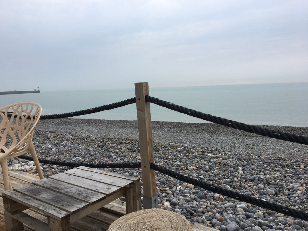 Prenons l’exemple de ce que l’on appellerait ailleurs « paillotte », installée sur les galets, La Belle Plage. J’aime la fréquenter, quand ma cabine de plage n’est pas encore installée, car elle a beaucoup de charme, avec sa structure de bois et sa magnifique vue mer.