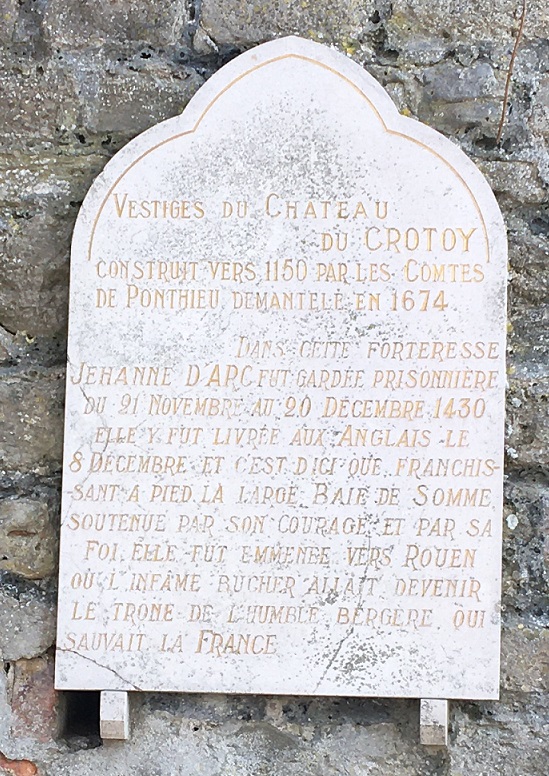 Mais notre propos, vous l’avez compris, ne porte pas sur cette Jeanne, mais sur une autre, qui est passée par Le Crotoy et y a séjourné. Hélas pour elle, pas pour les Bains de Mer. Car elle n’y fut point tout à fait libre de ses mouvements. Une photo? Je ne puis. Mais une photo de la statue qui commémore son passage, volontiers…