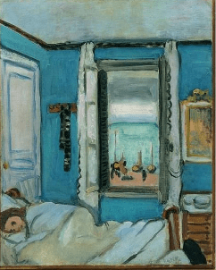 La « palette » (objet qui brille par son absence, soit dit en passant…) est beaucoup plus réduite que celle de son prédécesseur. Les trois couleurs primaires. Du bleu, du jaune, et du cinabre. Couleur que je ne connaissais pas. Et dont j’ai appris depuis qu’il est utilisé depuis l’Antiquité, que jadis en Chine seuls les empereurs pouvaient l’utiliser, et qu’il provient d’un minéral en lien avec le souffre.