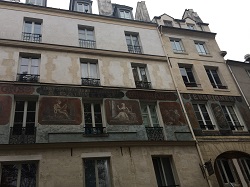 Me revoici rive gauche… « ma » rive! La rareté des voitures est surprenante à cette heure, et je m’amuse à traverser et retraverser la large rue… Vais-je prendre la rue de Bièvre? Une nouvelle oeuvre l’orne, plutôt inattendue à cet endroit…