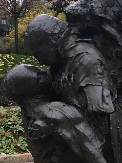 Me voici arrivée au Square René Viviani – dont le nom rend hommage à celui qui fut au début de sa carrière député socialiste élu deux fois dans le 5ème arrondissement -, square où j’ai passé jadis des heures en attendant que le service des urgences de l’Hôtel Dieu veuille bien me recevoir… Il a changé depuis, car une statue y a été placée en 1996, en hommage à Saint Julien… Elle a remplacé la pelouse sur laquelle je me reposais…