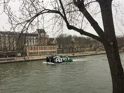 Une fois sortie de l’Eglise, je retrouve les rues calmes de l’île, puis le quai d’Orléans, dont je vous parlais dans le 1er article, d’où mon regard est attiré par une étrange embarcation.
