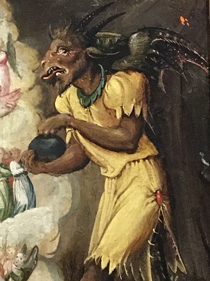 « L’homme n’est ni ange ni bête, et le malheur veut que qui veut faire l’ange fait la bête »… Cette phrase des Pensées de Pascal m’est venue en voyant le tableau suivant, la Tentation du Christ, où la représentation du Diable est parlante.