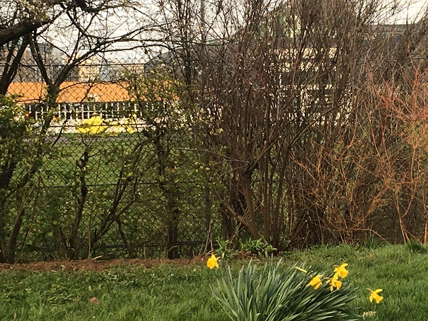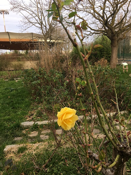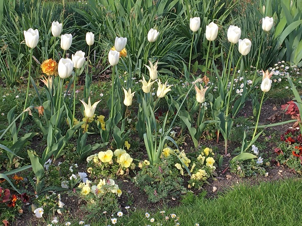 Dans un rectangle ceint de barrières, entourés du bleu non de la Vierge mais des uniformes de police, municipale et nationale, et de gendarmerie, plus des soldats armés, quelques personnes sont là pour assister à la messe prévue. On les a fouillées à l’entrée! Et il y a bien un orchestre typique. La Cimarde? Je ne sais, je suis trop loin pour le voir. Je repars donc, et trouve cette fois des équipages qui déchargent les gerbes de leur pointu. Il s’est donc bien passé quelque chose. Une bénédiction en cachette?Quelques Niçois ont compris, et viennent récupérer les fleurs. Des touristes de passage par là demandent s’ils peuvent aussi en avoir. On leur en donne. Et c’est ainsi que j’ai pu offrir à ma voisine, le lendemain, ce joli bouquet…