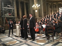 J’ai fait une exception à une règle pour moi sacro-sainte : ne pas enregistrer durant le concert. Lors de la reprise de l’Hallelujah par le choeur, j’ai capté quelques moments de la fin, pour vous les partager. Vous pourrez voir et entendre cette « finale de final », et peut-être comprendrez-vous mieux mon plaisir, j’allais dire le Bonheur pur. Vous n’entendrez hélas pas les solistes, qui se trouvaient à ce moment sur les côtés, hors champ; mais Tatiana Probst chantait aussi…