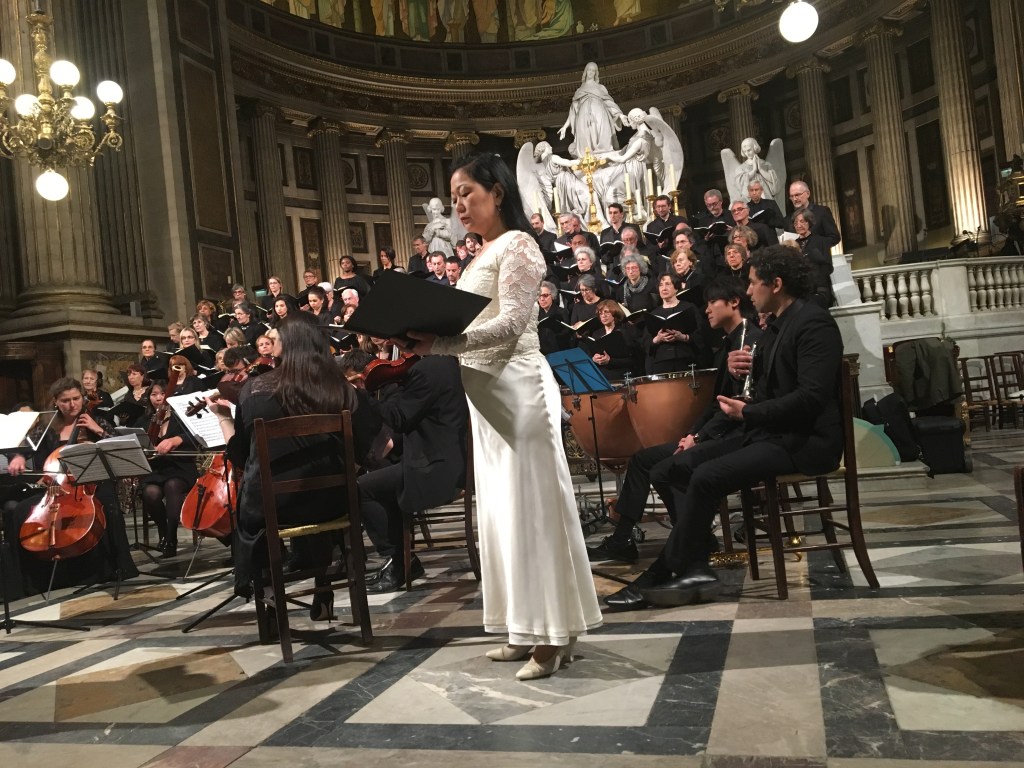 La soprano Tatiana Probst est vraiment lumineuse, et sa voix, à la fois chaleureuse, intense et souple. J’ai vraiment adoré son interprétation et le rayonnement de sa personne. Vous pouvez la voir sur cette (mauvaise) photo, aux côtés de l’alto, ici souriante alors qu’au contraire de sa collègue, elle avait gardé un air triste tout au long du concert.