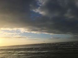 Ils ne sont pas seuls à jouer avec les vagues… Deux baigneuses profitent de cette fin d’après-midi pour jouir de l’eau plus que fraîche, laissant les badauds ébaubis, comme moi.