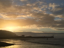 Le soleil descend doucement vers la falaise. En été, il se couche sur l’eau, donnant lieu à des spectacles dont on ne se lasse pas. Mais en cette saison, il arrive difficilement jusqu’à la jetée du phare. Il n’atteindra celui-ci que vers la Saint Valentin, comme pour un rendez-vous amoureux…