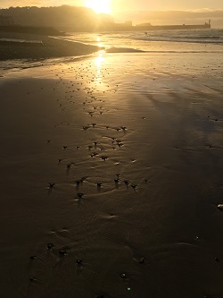 Sur la plage, mais bien à l’abri du vent glacial de ce jour