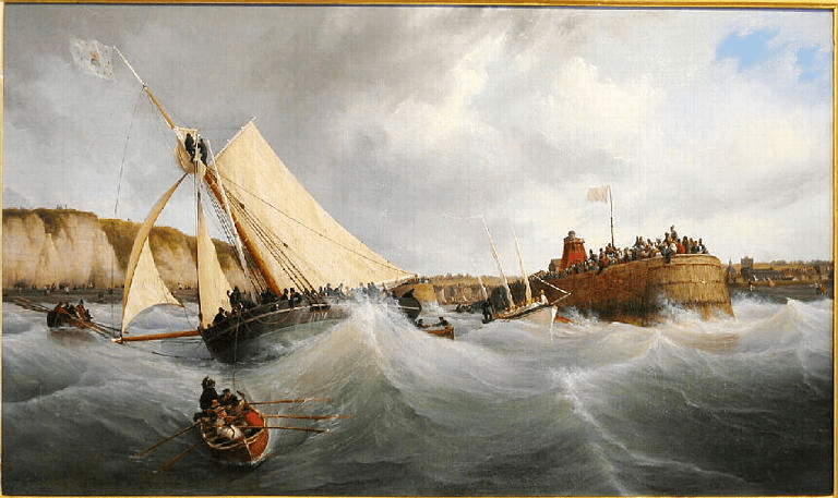 Une autre femme célèbre, mais moins adepte de courses marines, est venue sur cette côte. Un tableau exposé au musée figure la mésaventure qui lui est arrivée. Cela ne s’est pas passé à Dieppe, mais un peu plus au Nord, au Tréport. La reine Victoria venait rendre visite à Louis-Philippe, dans son château d’Eu. Les marins ratèrent la marée haute, nécessaire (encore aujourd’hui) pour entrer dans le port. Ils durent donc mettre à l’eau une chaloupe, puis une cabine de plage fut descendue sur le sable pour aller chercher la souveraine.