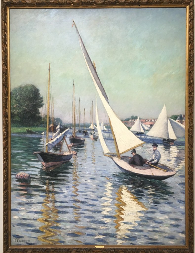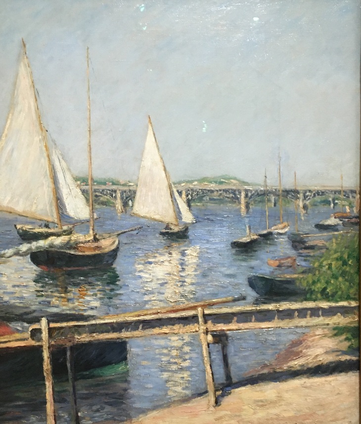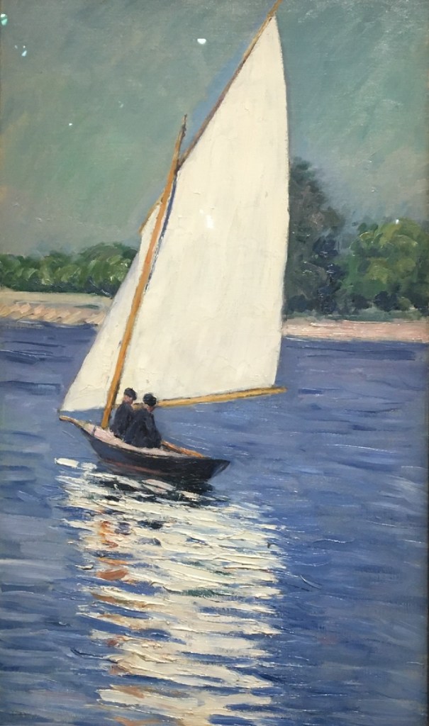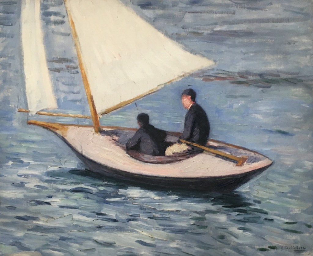 Nous avons évoqué hier la passion de Caillebotte pour les canots (et canotiers!). Aujourd’hui nous le retrouvons en bord de Seine (et de mer), mais s’intéressant à un autre type d’embarcations, les voiliers. Il a en effet été parmi les premiers membres du Cercle de la Voile, fondé à Argenteuil en 1858. Si l’histoire de ce cercle vous intéresse, vous la trouverez ici.