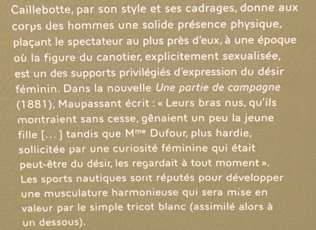 A l’époque de Caillebotte (mais pas seulement!), les artistes ont beaucoup créé autour des femmes, voire de La Femme. Aussi est-ce assez inhabituel de trouver une collection de tableaux en hommage à la beauté des hommes, voire, parfois, à la virilité. C’est pourtant l’impression la plus puissante que j’ai eue en visitant cette semaine l’exposition organisée par le Musée d’Orsay. A vrai dire, en plaçant l’affiche en tête de cet article, je me suis aperçue que j’avais mal interprété le sous-titre « Peindre les hommes », en raison de la stupidité de notre langue – par ailleurs si belle – qui confond en un seul mot le genre humain et l’homme en tant que catégorie sexuée et/ou de genre…
