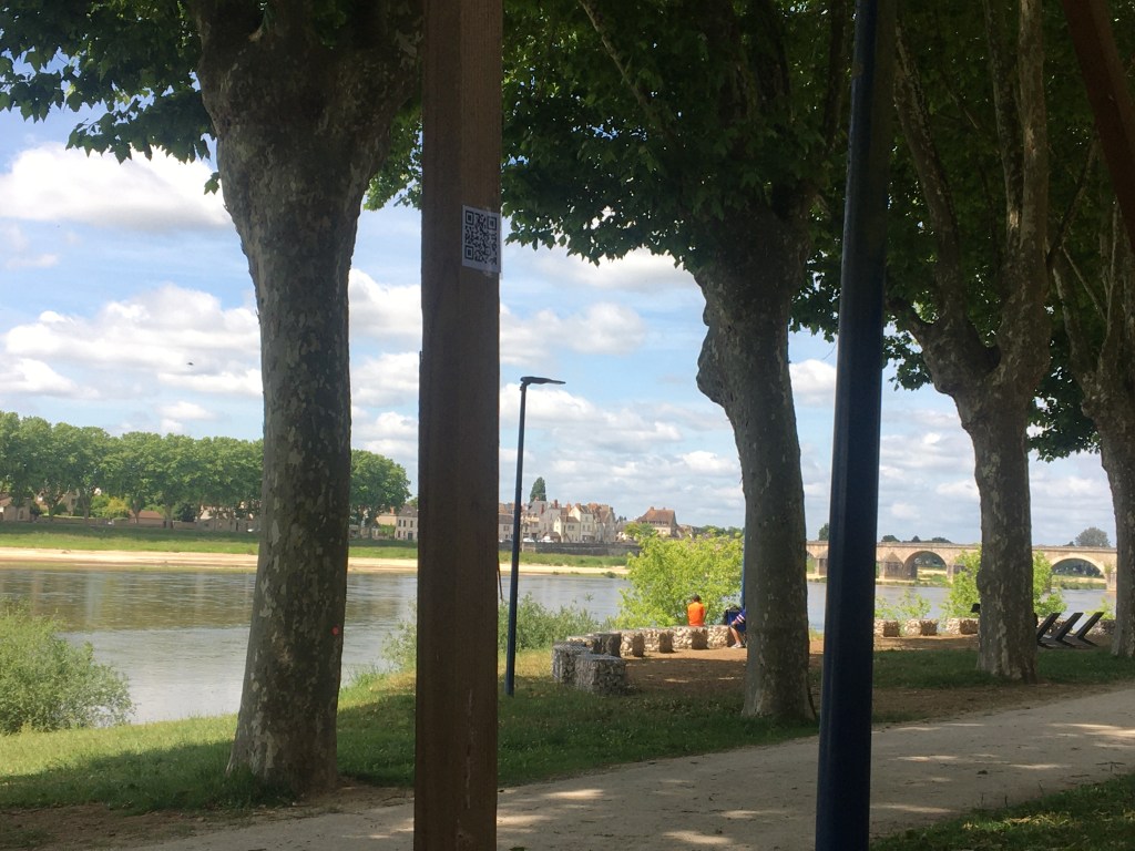 Une vraie chance : une guinguette en bord de Loire est fermée, et nous profitons honteusement de ses installations avec une jolie vue sur le fleuve…